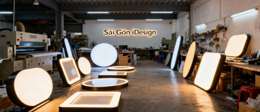 Chuyên thi công hệ thống quảng cáo ngoài trời và trong nhà với công nghệ hiện đại. Chúng tôi cung cấp giải pháp trọn gói từ thiết kế, sản xuất đến lắp đặt các sản phẩm quảng cáo như hộp đèn, bảng hiệu, pano, banner, standee... Với đội ngũ kỹ thuật lành nghề và trang thiết bị chuyên dụng, chúng tôi cam kết mang đến sản phẩm chất lượng cao, đảm bảo tính thẩm mỹ và độ bền vượt trội.